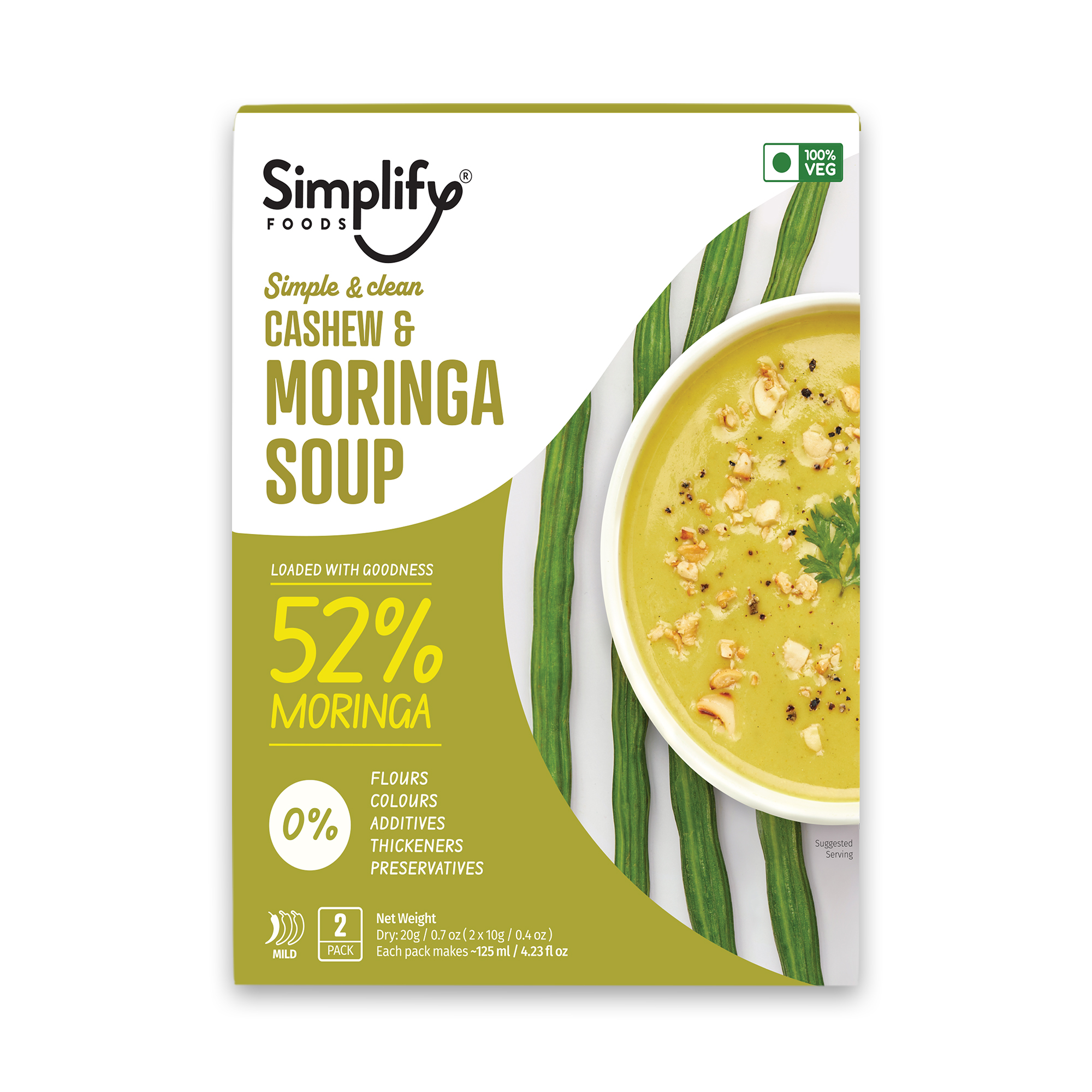 No ReviewsExperience bliss in a bowl - bursting with flavour, this uniquely delicious soup is made with Moringa (Drumstick) pulp, blended with fresh cashews and added with aromatic spices - it’s truly happiness in a bowl (or mug!) Product Info Cashew & Moringa Soup| Ready to Eat Instant Food Mix with authentic flavours, and 0% preservatives or additives! Chef's note: Adjust water based on required consistency. Add salt/pepper to suit your palate. Fully cooked product, made with 100% fresh and wholesome ingredients! Prepared in small batches by an expert Culinary team, with the precision of a laboratory! The perfect companion for your Breakfast, Snack, Tiffin, or any meal you like - at home, or on the go! So go ahead, just Sip. Slurp. Savour!