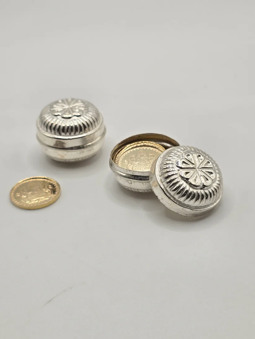 No ReviewsLike a tiny treasure box tucked inside your vanity ✨, this real silver dabbi is perfect for storing kumkum, turmeric, or small essentials. With its polished finish and timeless charm, it adds a touch of tradition and elegance to your pooja rituals or makes a graceful return gift.