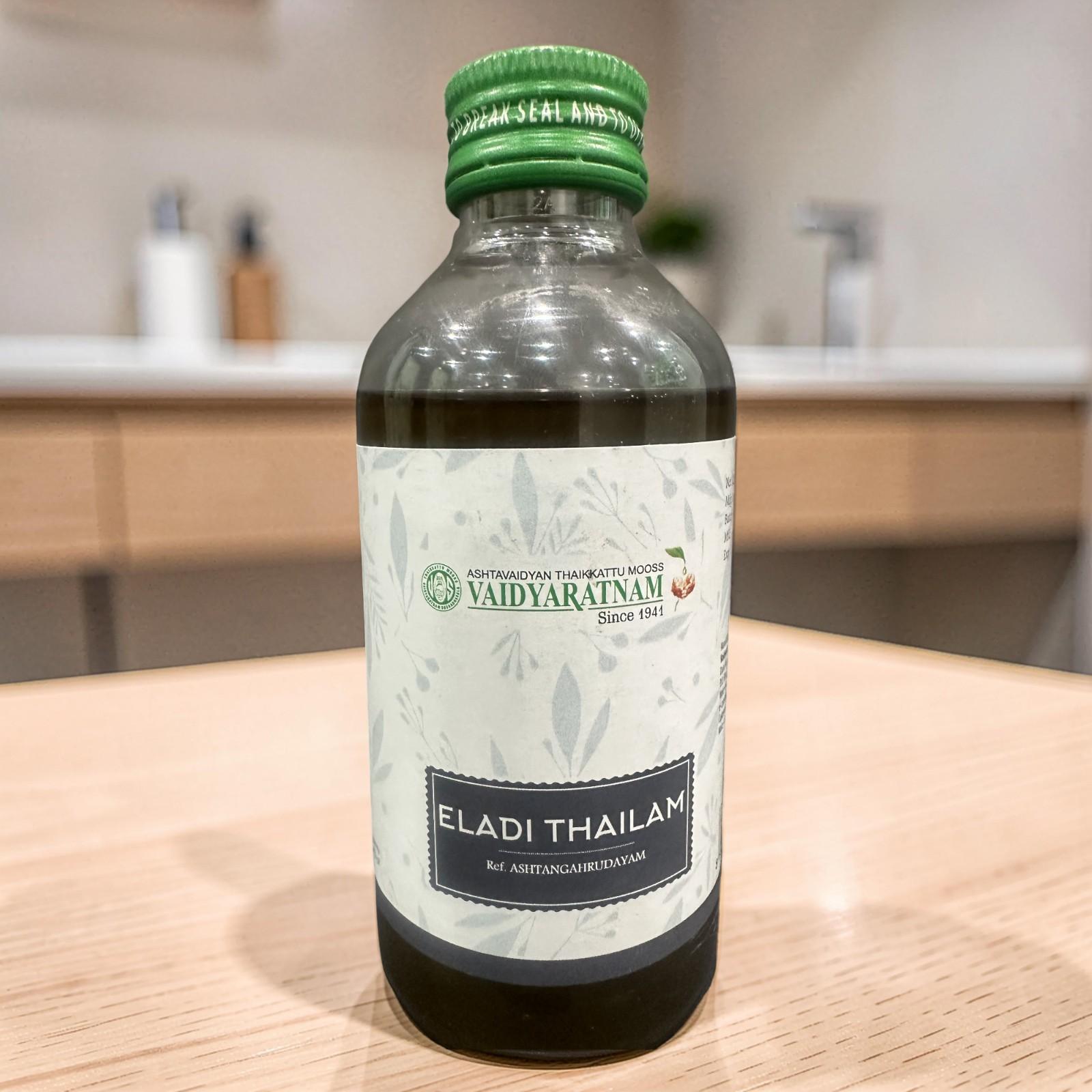 Experience the ancient Ayurvedic secret to clear, glowing, and healthy skin with Eladi Thailam, a classical herbal oil formulated to purify, protect, and rejuvenate your skin.
