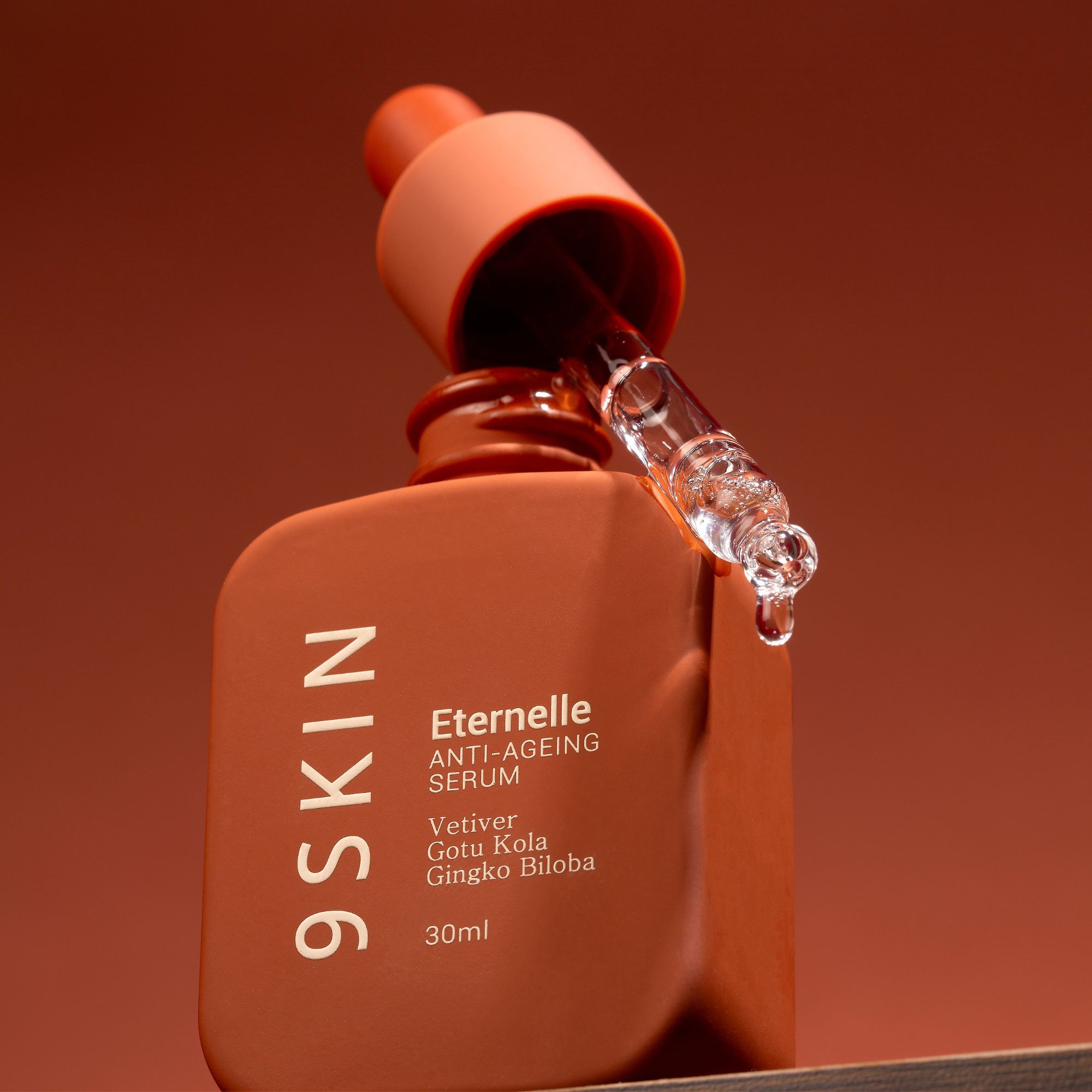 Apply a few drops of the ETERNELLE serum on damp skin all over your face and neck in an upward motion