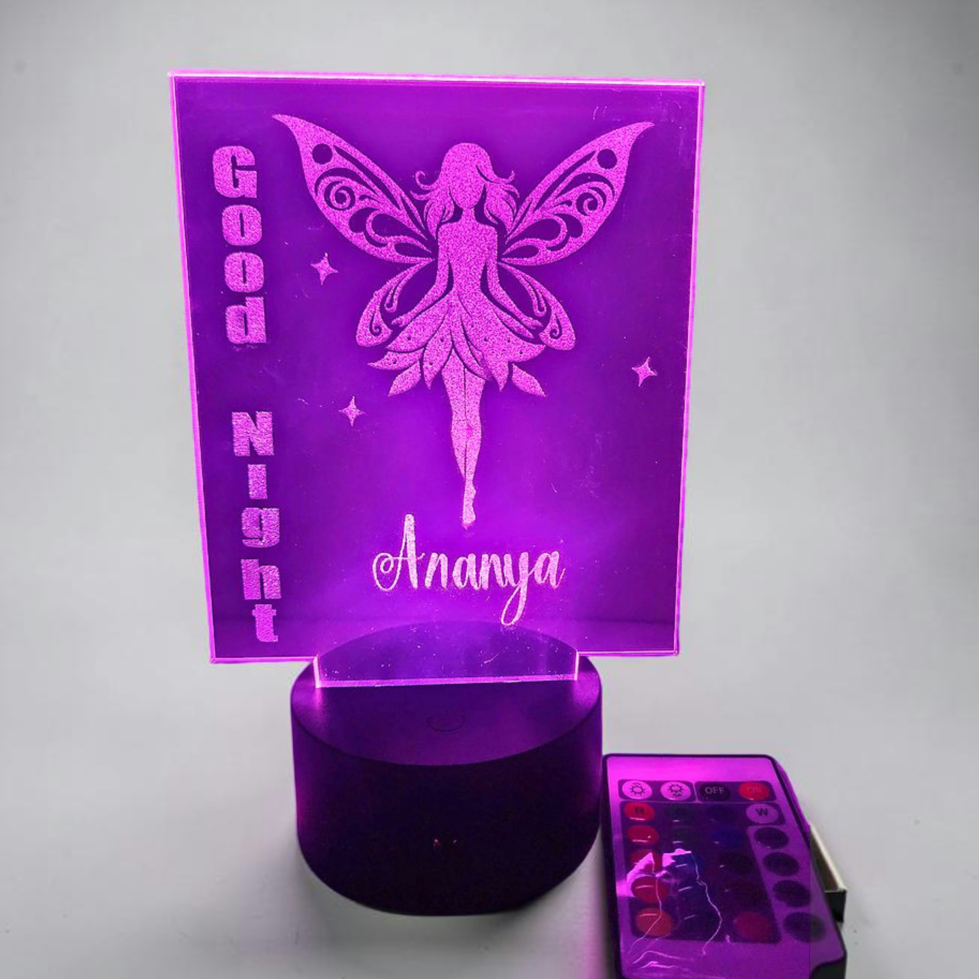 No ReviewsFairy Dream Bed Lamp Add a touch of warmth and personality to your child's bedroom with our customizable bed lamp. This unique lamp allows you to add your child's name and a special message, making it a thoughtful gift or a meaningful addition to their bedroom. Features: Customizable: Add your child's name and a personal message to make it extra special Color-Changing Base: Create a magical ambiance with our color-changing base Remote Control: Conveniently adjust the brightness and color with our easy-to-use remote Dual Power Options: Use batteries or USB to power your lamp Perfect for Kids' Bedrooms: Add a warm and cozy glow to your child's bedroom with our bed lamp Suitable for Kids: Our personalized bed lamp is designed with kids in mind. It's a great way to encourage independence and make bedtime a little more fun.