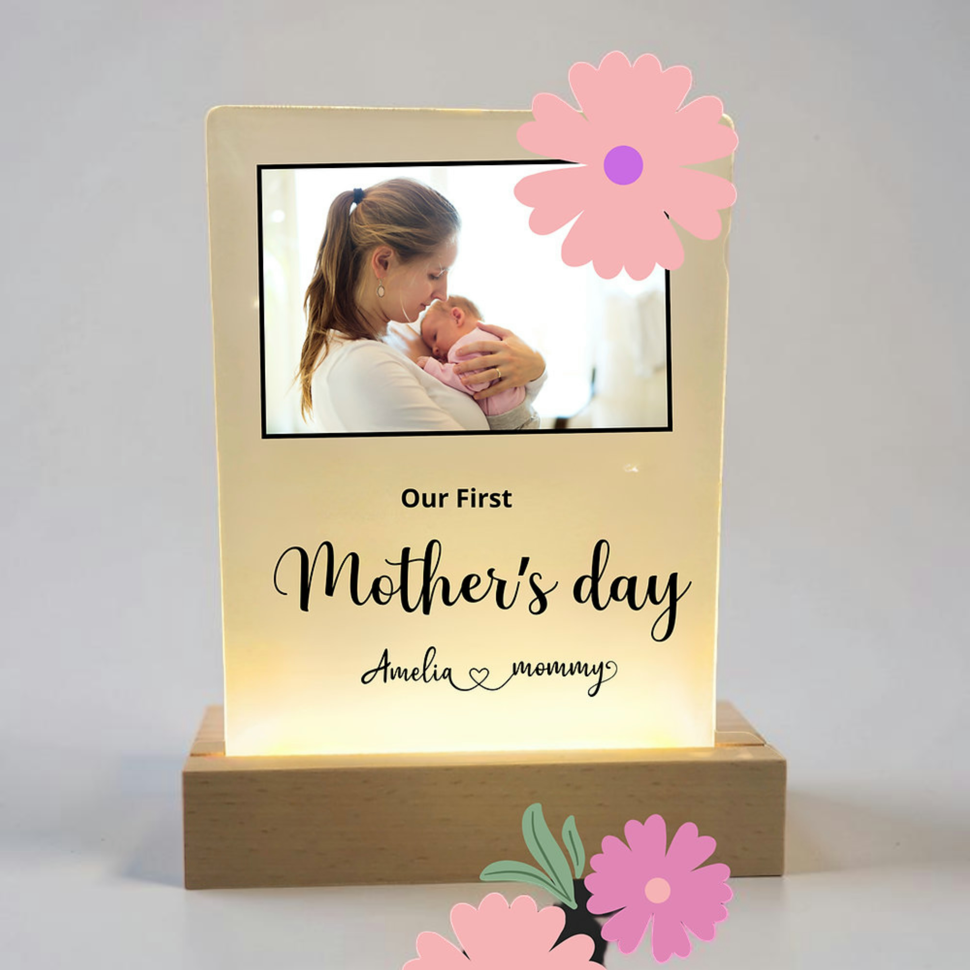No ReviewsMom's Moments of Lights Create a warm and cozy ambiance in your home with our Melodic Memories Acrylic Photo Frame Night Lights. This beautifully crafted night light is designed to hold your cherished memories close, while also providing a soft, gentle glow. Key Features: Acrylic Photo Frame: Holds a 3 X 4 inch photo, perfect for capturing special moments. Night Light: Soft, LED light provides a warm ambiance, ideal for bedrooms, living rooms, or nurseries. Wood Stand: Sturdy, wooden base keeps the night light stable and secure. Customizable: Add your special message. Product Specifications: Material: Acrylic frame, wood stand, and LED light. Dimensions: 6 inches (width) x 4 inches (height), 3mm thickness. Color: Yellow LED light, natural wood stand. Power Source: USB-powered (USB cable included). How to Send Your Photo: Place your order with the details. Send your photo to info@partyfrenzycreations.ca with the order number. Order Now: Create a Sweet Memories night light that speaks to your heart. Order now and cherish your memories forever!