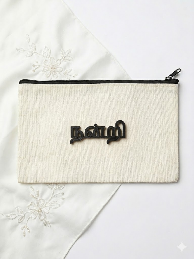 Make your special occasions more meaningful with these elegant “Nandri” Jute Zipper Pouches, thoughtfully designed as perfect bulk return gifts. Featuring the Tamil word “Nandri” (Thank You), each pouch is a beautiful way to express gratitude to your guests.