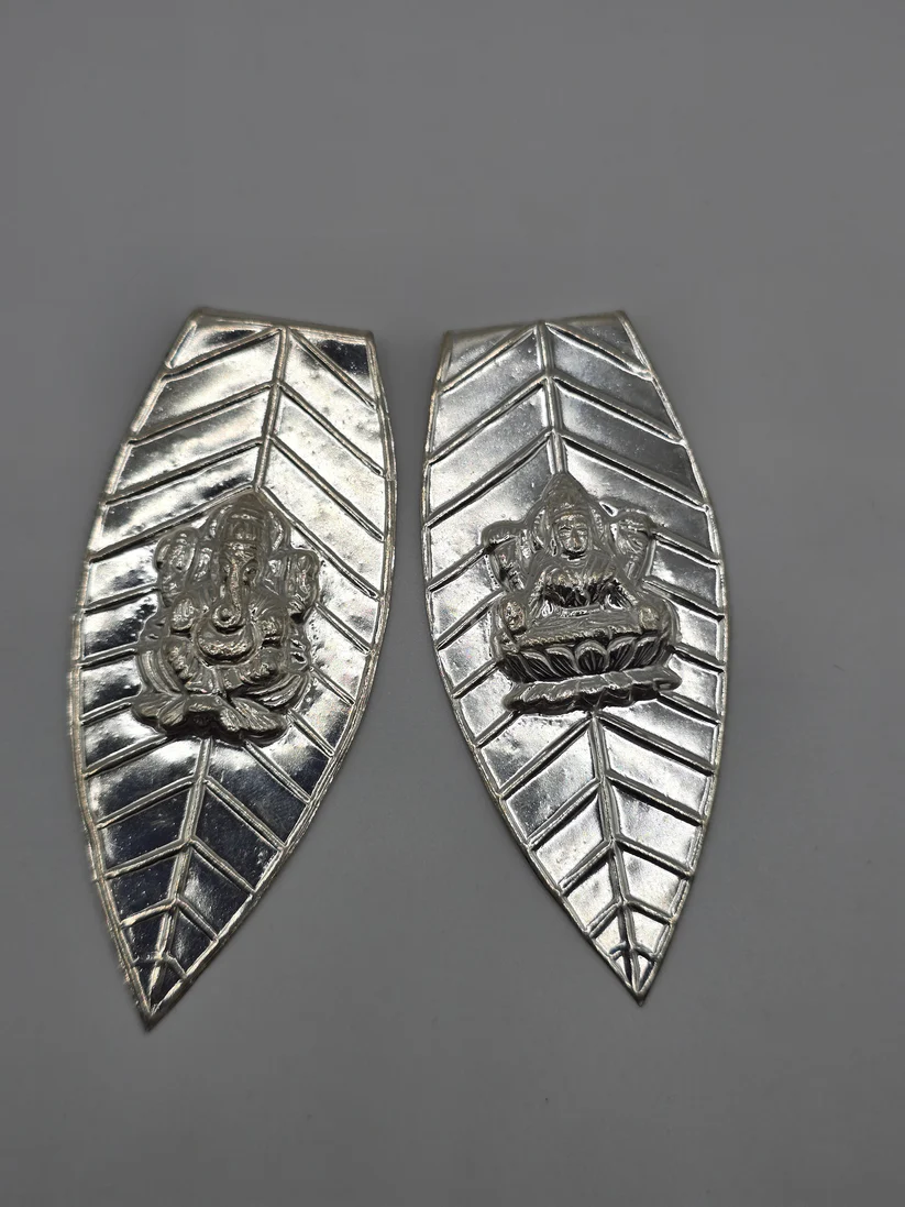 Welcome positivity and prosperity into your home with this elegant Real Silver Ganesha and Lakshmi Shubh Labh wall hanging set, designed in a beautiful oxidized finish. Featuring the divine presence of Lord Ganesha and Goddess Lakshmi, it’s like placing a protective blessing right at your doorstep.