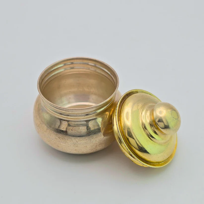 No ReviewsAdd a touch of timeless grace to your celebrations with this beautifully crafted real silver kumkum box, finished with a luxurious gold-toned lid. Designed for poojas, weddings, and special occasions, it blends tradition with a premium aesthetic—like pairing silk with subtle gold jewelry.