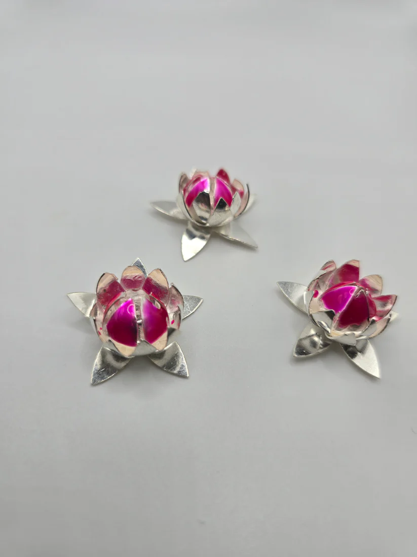 Real Silver Lotus Flower Buds with Pink Enamel - Spiritual Return Gift - Lotus on water -54000