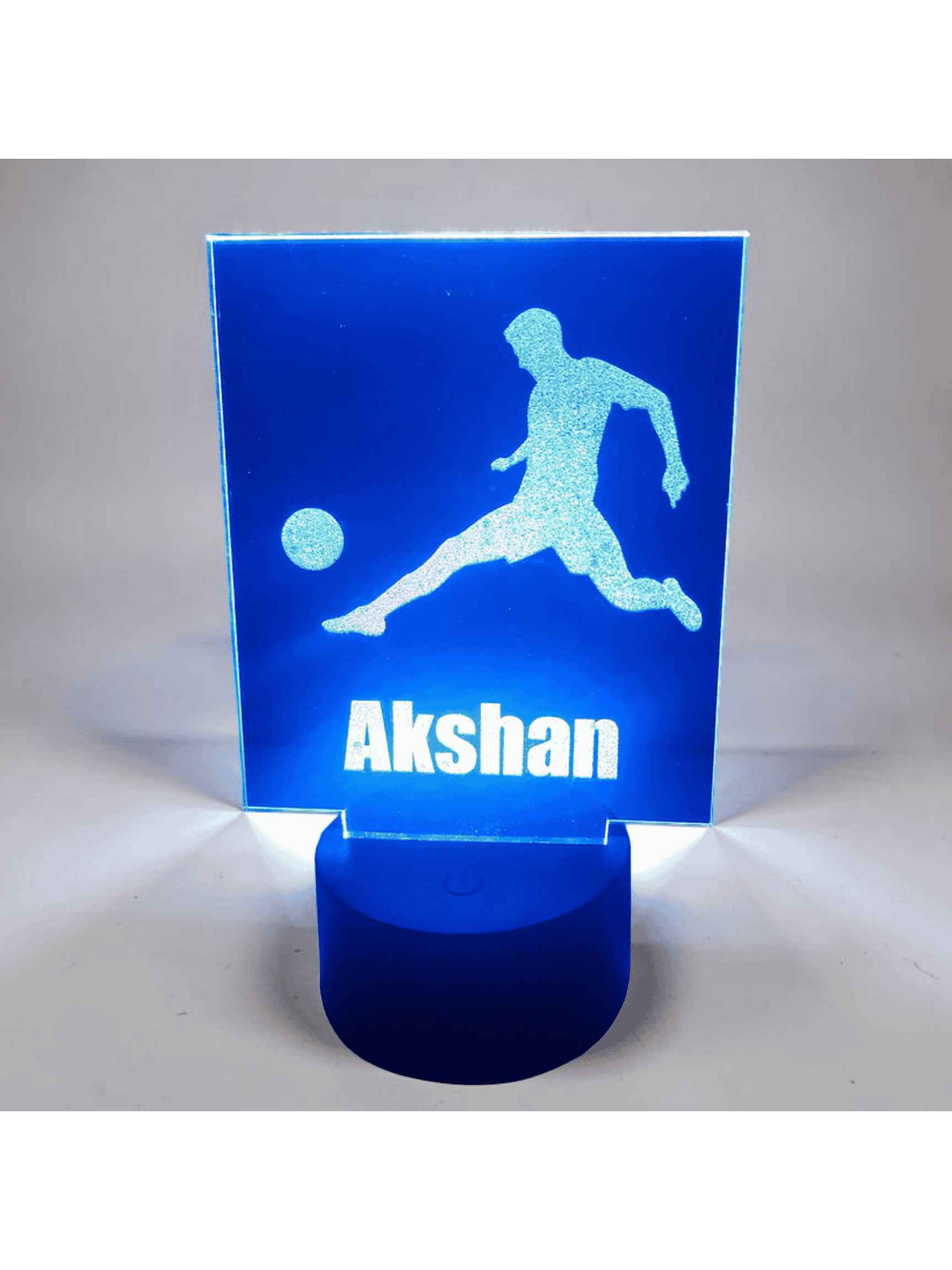 No ReviewsSoccer Champion Lamp Is your little soccer star ready to score big in their bedroom? Our customizable Soccer Superstar Bed Lamp is the perfect addition to any soccer enthusiast's bedroom! Features: Customizable: Add your child's name and a personal message to make it extra special. Color-Changing Base: Create a magical ambiance with our color-changing base. Remote Control: Conveniently adjust the brightness and color with our easy-to-use remote. Dual Power Options: Use batteries or USB to power your lamp. Perfect for Kids' Bedrooms: Add a warm and cozy glow to your child's bedroom with our bed lamp. Suitable for Young Soccer Players: Our personalized bed lamp is designed with kids and youth soccer players in mind. It's a great way to encourage independence, teamwork, and a love for the beautiful game. Plus, it makes bedtime a little more fun! Female Version: We've got the girls covered too! Our Soccer Superstar Bed Lamp is available in a female version, perfect for young female soccer players who dare to dream big!