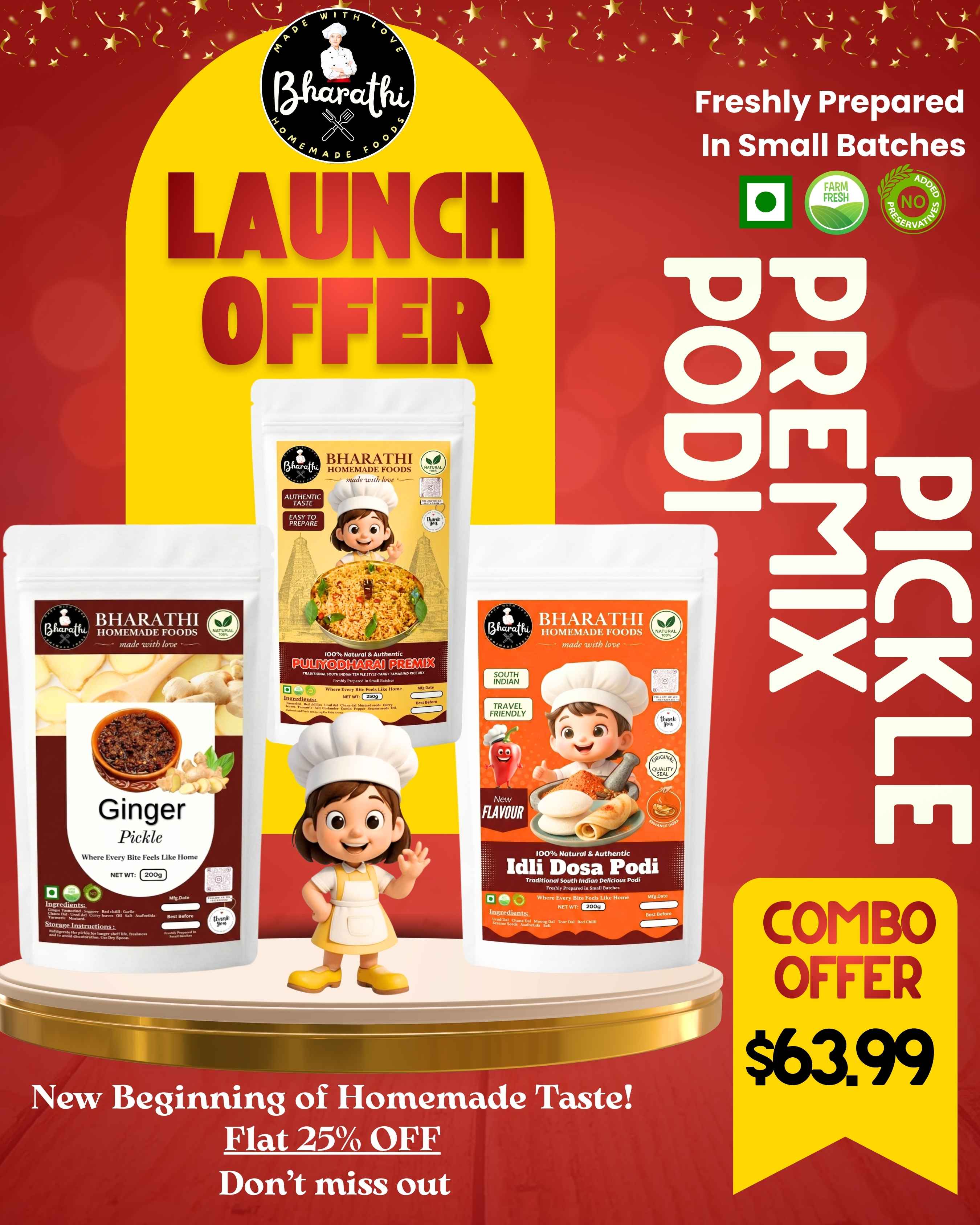 No ReviewsEnjoy the perfect blend of spice, tradition, and convenience with our Bharathi Homemade Foods 3 in 1 Combo ❤️